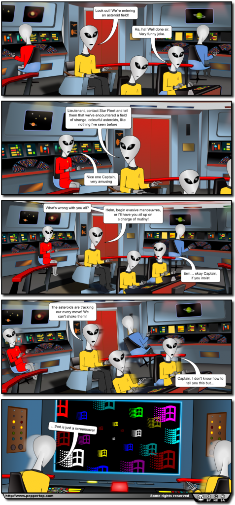 Our most recent comic strip, Ubuntufied Flying Object, was also our submission to the Ubuntu Free Culture Showcase. We decided to go with a Ubuntu-themed comic, with a bonus punchline of “Linux for human sentient beings”, based on the wordmark[…]↓ Read the rest of this entry…